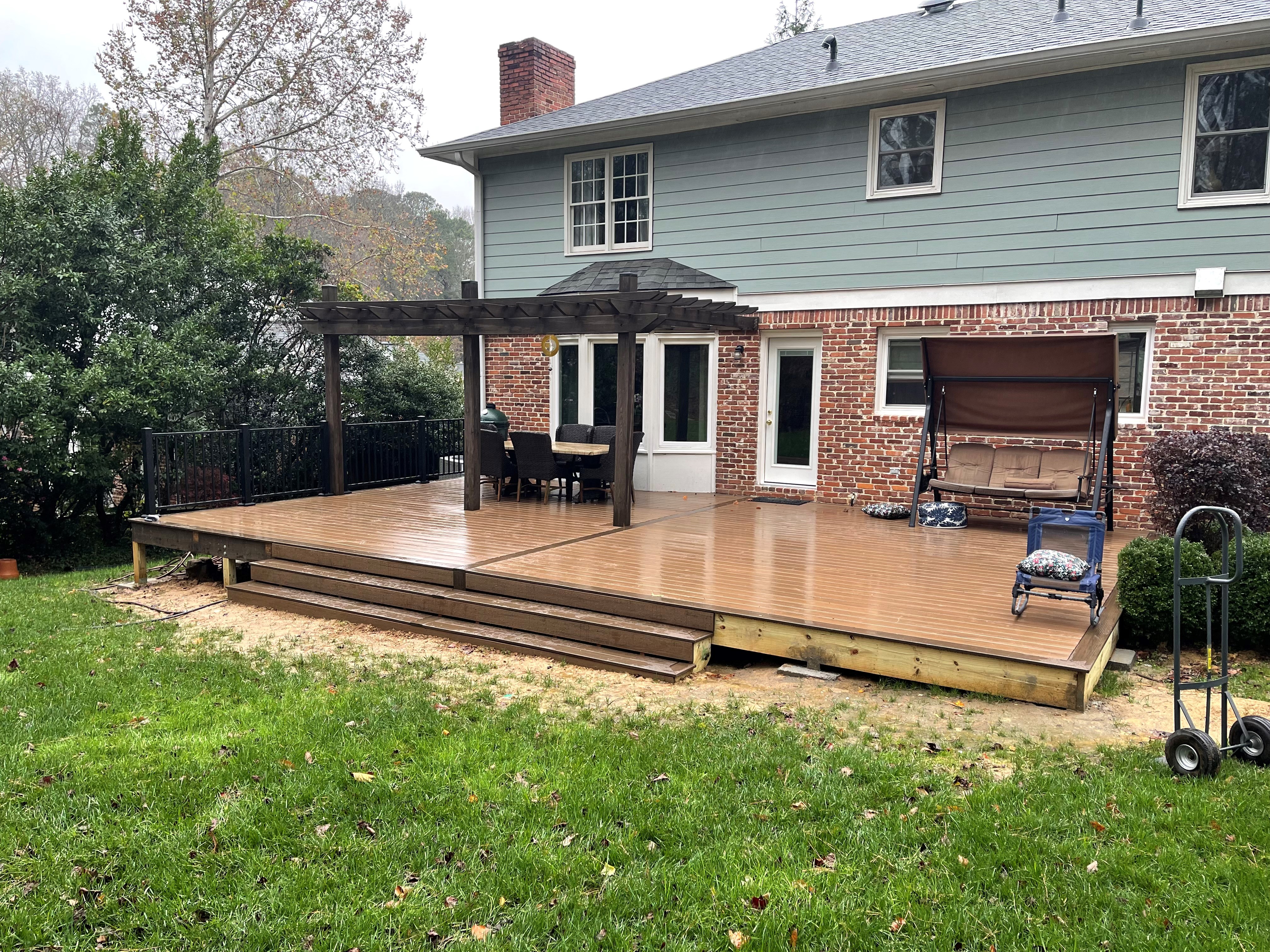 We design and build beautiful, custom decks using long-lasting materials. A low-maintenance material for deck building is composite wood, which mixes wood fibers and recycled plastic. A slightly more expensive alternative to wood but composite is durable and resistant to warping, insects, and weather. Always keep in mind that wood surfaces need sanding, sealing and pressure-washing once a year. The name-brand Trex decking is a composite material, made from 95% recycled materials - reclaimed wood, sawdust, and recycled plastic. Trex was the first to provide composite in the decking industry. Like other composite options, Trex decking is slightly more expensive than traditional wood. But it lasts and comes with a 25-year warranty. Georgia In Home Services is happy to discuss the best options for your home and specific family needs. Give us a call on 470-466-8403.