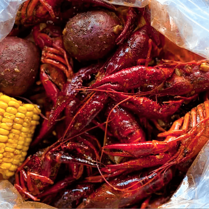 Includes: Hushpuppies, Fried Okra, Onion Rings, Breaded Wings, French Fries, 1 lb Snow Crab, 1 lb Shrimp, 1 lb Black Mussels, 1 lb Crawfish, 4 Eggs, 4 Potatoes, 4 corns