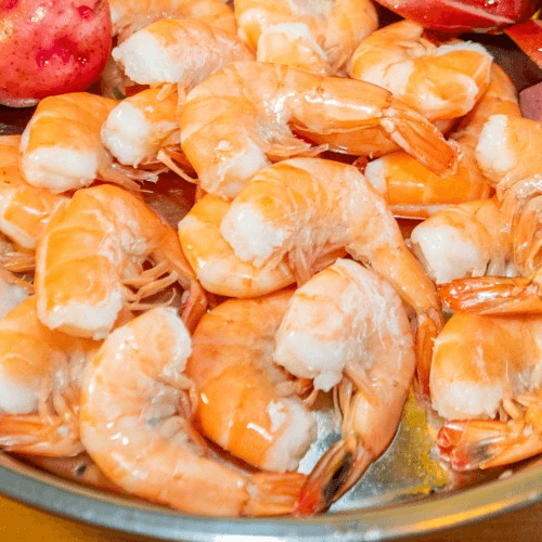 One pound shrimp (no head), two eggs, one corn, two potatoes, 0.25 pound sausage