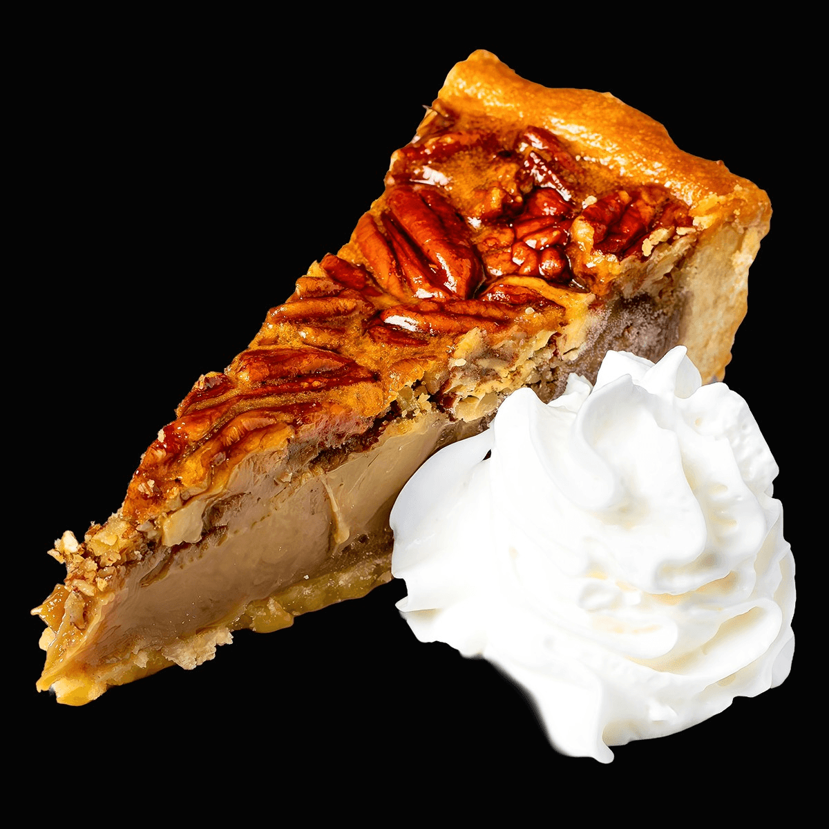 A classic Southern dessert made with toasted pecans in a rich, buttery filling with a touch of bourbon, baked in a flaky pie crust. Sweet, nutty, and perfectly balanced—a warm slice of comfort. Contains a small amount of alcohol.