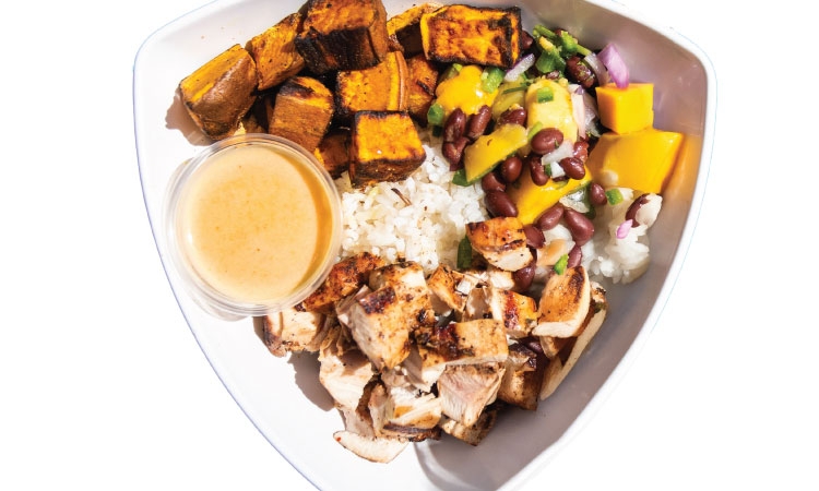 Basmati rice blend, roasted sweet potatoes, garlicky cilantro green beans, BBQ chicken, and citrus ginger sauce *For modifications, please select a Mahana Bowl instead and choose your ingredients.