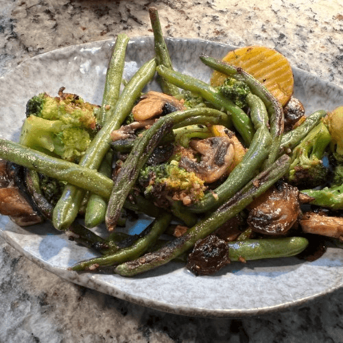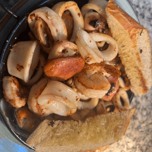 Shrimp, calamari, octopus, mussels, Spanish sausage, and fresh mushrooms grilled with garlic and olive oil, and grilled bread.