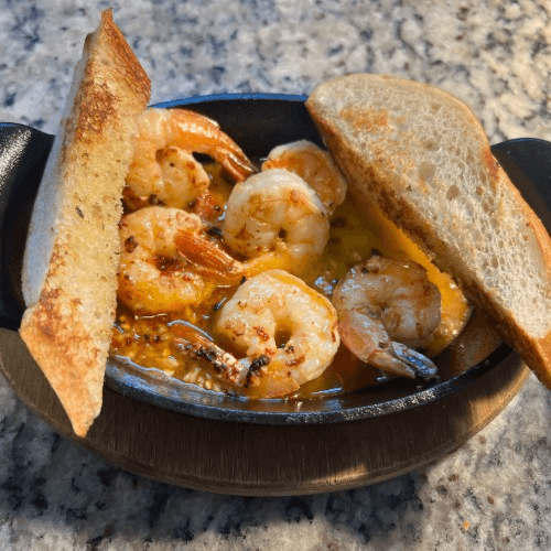 Grilled shrimp, fresh garlic, virgin olive oil, chilli flakes, grilled bread