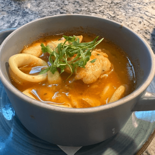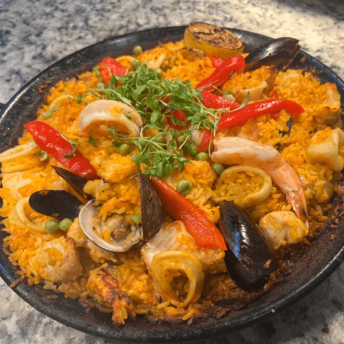 Shrimp, calamari, mussels, clams, fish of the day, chicken, and Spanish chorizo simmered with saffron, bomba rice