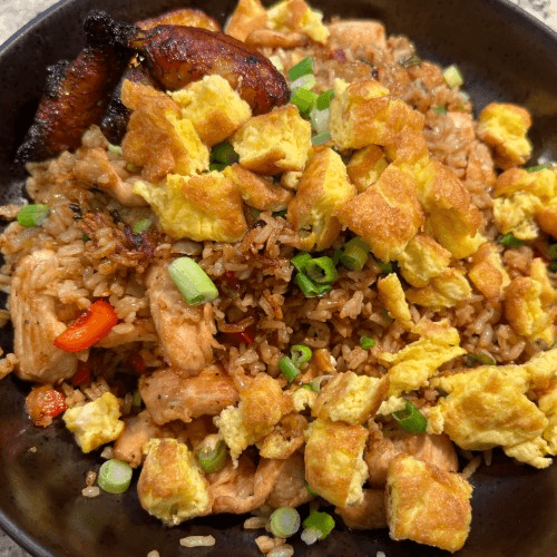 Peruvian-Cantonese style fried rice, scallions, onions, red peppers, ginger, soy sauce, chopped egg tortilla, and sautéed in a fiery wok