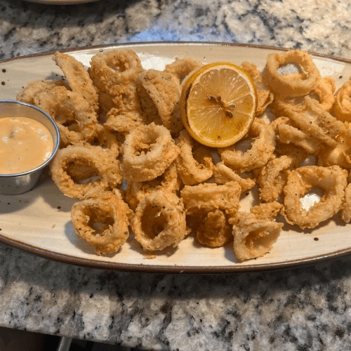 Calamari rings battered and flash-fried, romesco aioli, grilled lemon