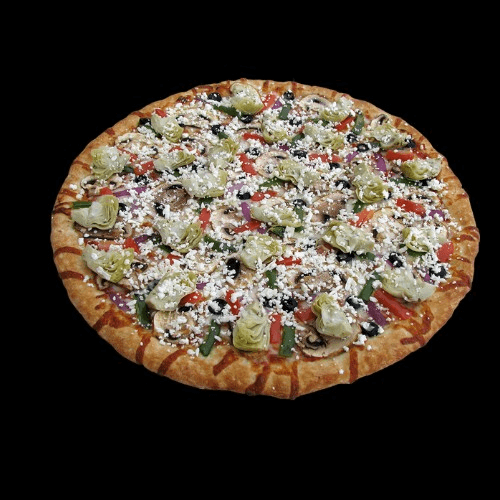 Onions, Green Peppers, Spinach, Mushrooms, Tomatoes, Green Olives, Black Olives, Hot Peppers, Broccoli & Blend of 3 Cheeses