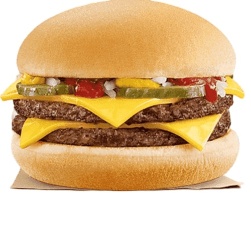 Two beef patty and double the bacon. Deluxe includes fries & drink. All of the fixings: cheese, mayo, lettuce, tomato, mustard, ketchup, pickles, onions. 5.33 oz juicy angus beef patty. 4.5" European bun.