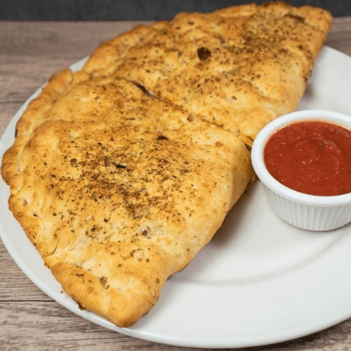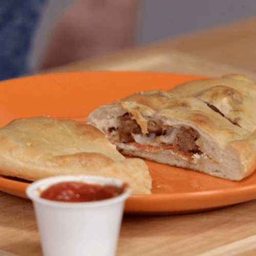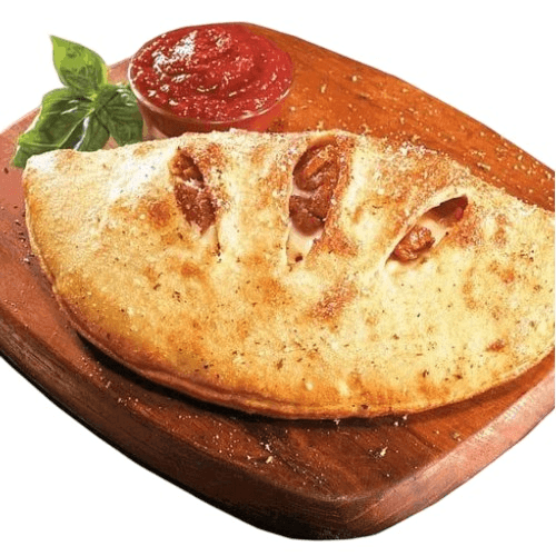 Chicken, green peppers, onions, provolone, mozzarella, sauce wrapped in fresh dough