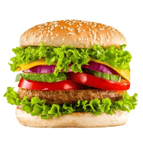 Lettuce, tomato, onion, pickles & plant based meat. Deluxe includes fries & drink. All of the fixings: cheese, mayo, lettuce, tomato, mustard, ketchup, pickles, onions. 5.33 oz juicy angus beef patty. 4.5" European bun.