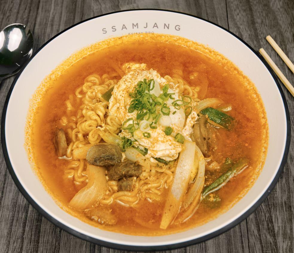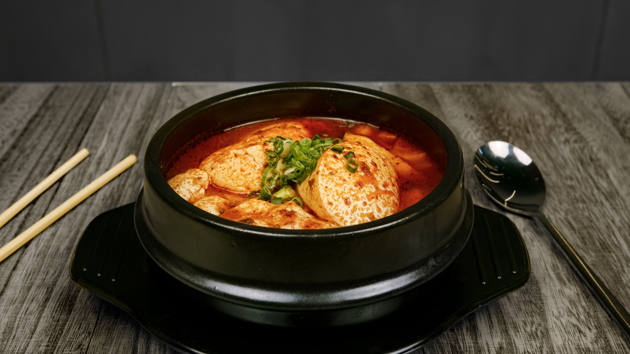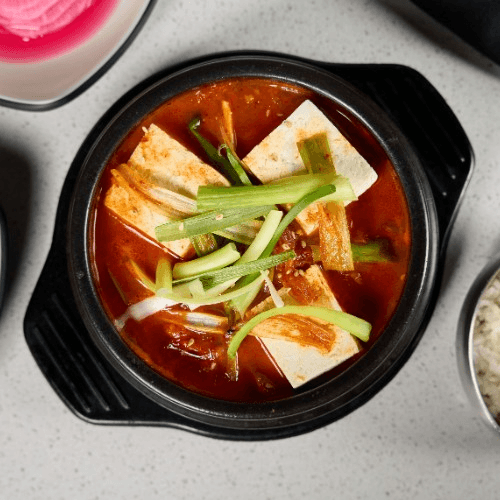 A stew made from soybean paste with brisket, tofu, and vegetables
