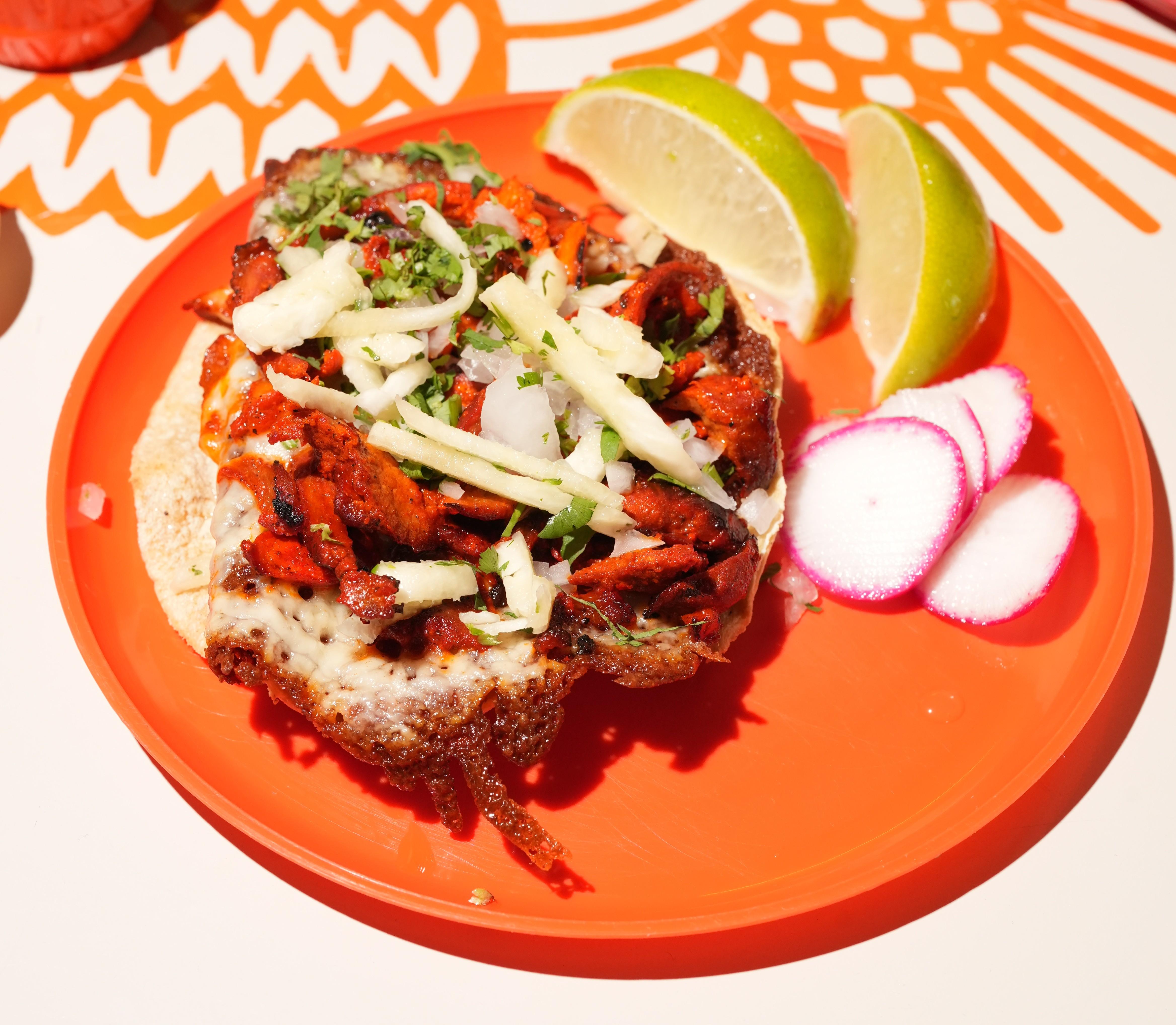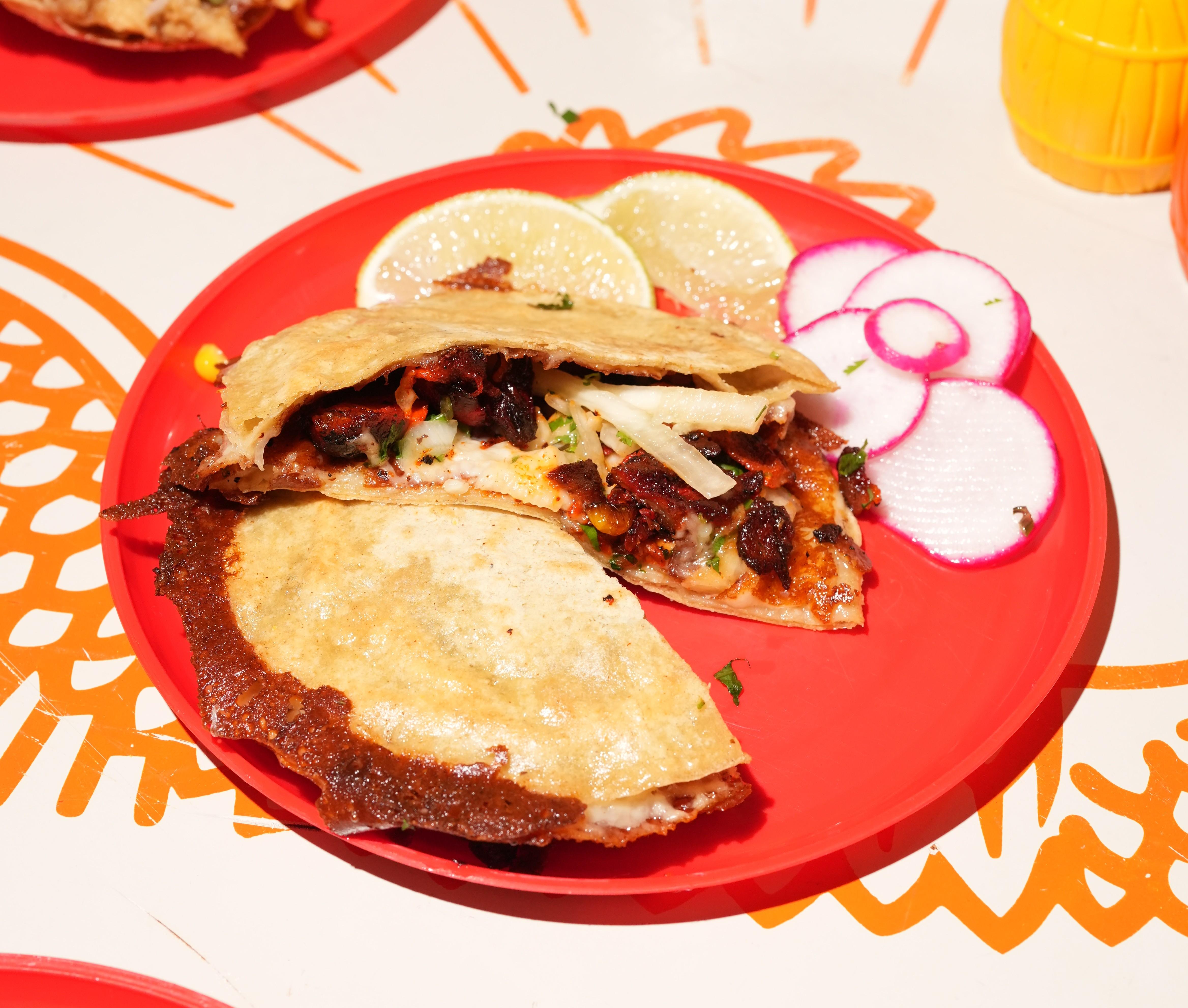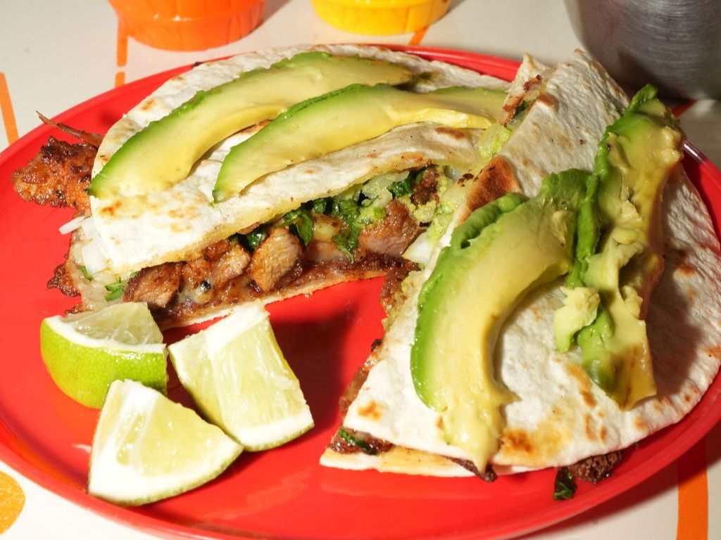 Marinated pork melted together with rich chihuahua cheese, all grilled between two golden flour tortillas and topped with a few slides of haas avocado. Crispy, cheesy, and bursting with bold flavor