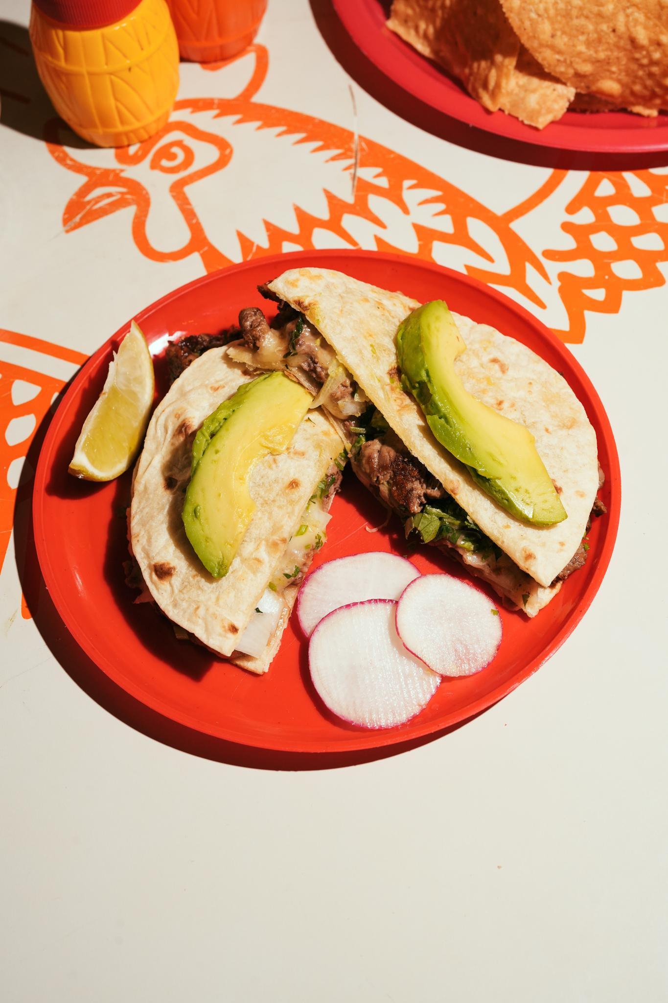Steak melted together with rich Chihuahua cheese, all grilled between two golden flour tortillas and topped with a few slides of Haas avocado. Crispy, cheesy, and bursting with bold flavor.