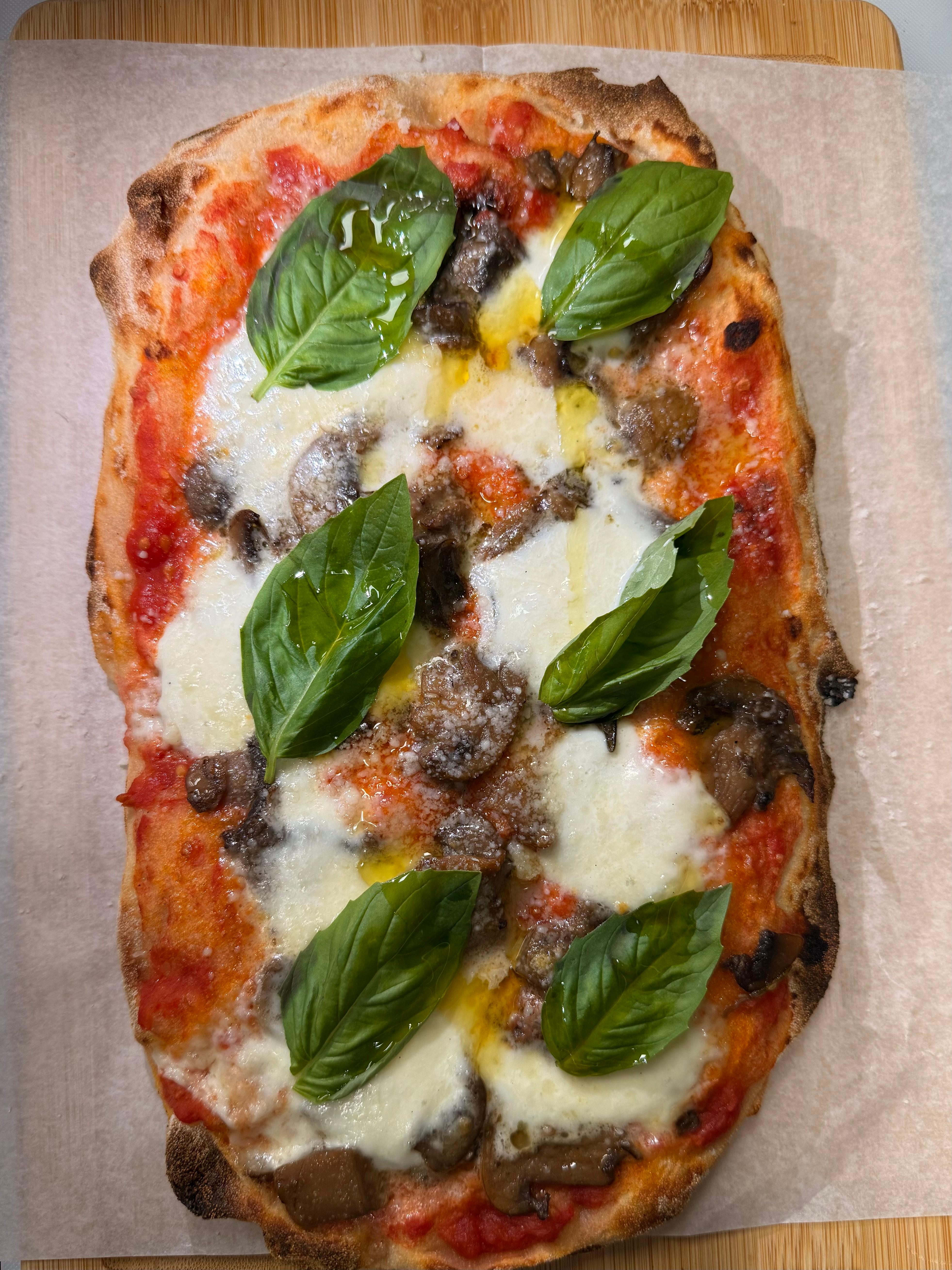 Tomato fresh mozzarella fior di latte, mix wild mushrooms, fresh basil, Pecorino Romano and extra virgin olive oil.