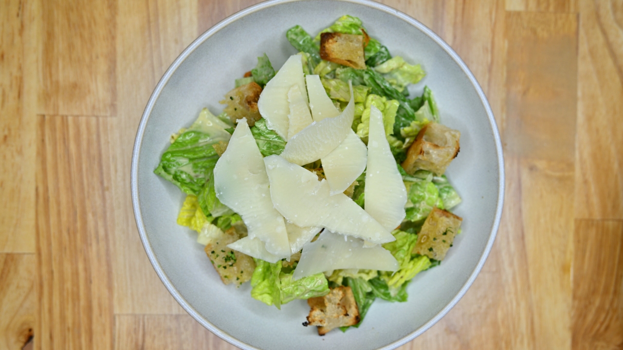 Crisp romaine lettuce, shaved Parmigiano Reggiano, and Classic Caesar Dressing made with anchovies.