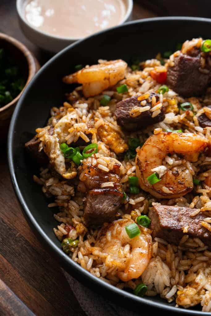 House fried rice with shrimp and filet mignon cube beef