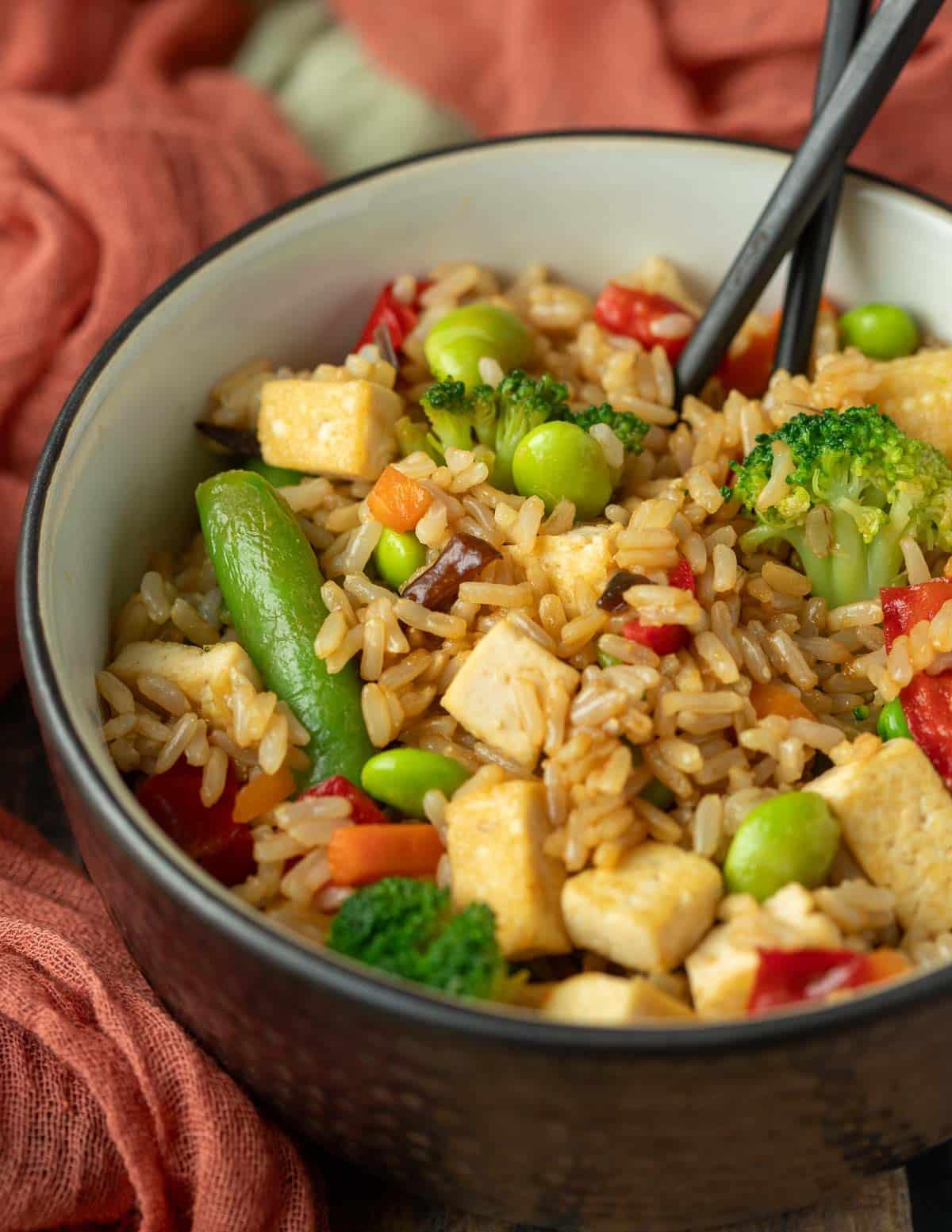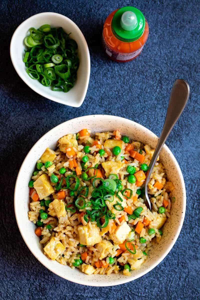 traditional fried rice with fried tofu.