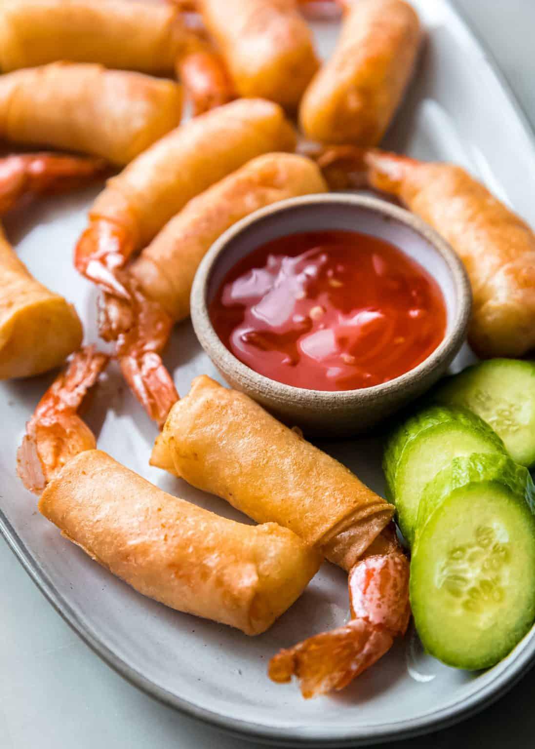 Wrapped with egg paper, and shrimp.