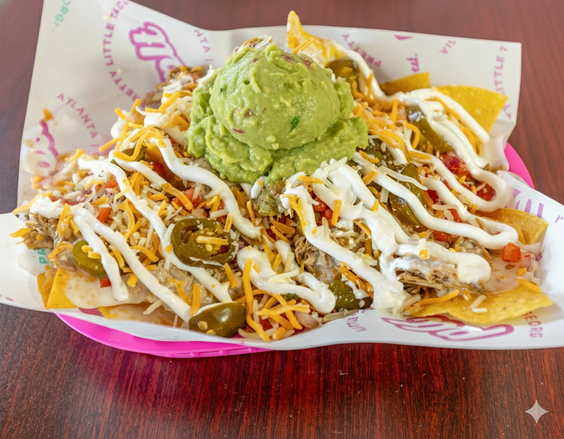 House Fried Chips, Your Choice of Protein, Queso, Shredded Cheese, Pico De Gallo, Jalapeños And Guacamole.