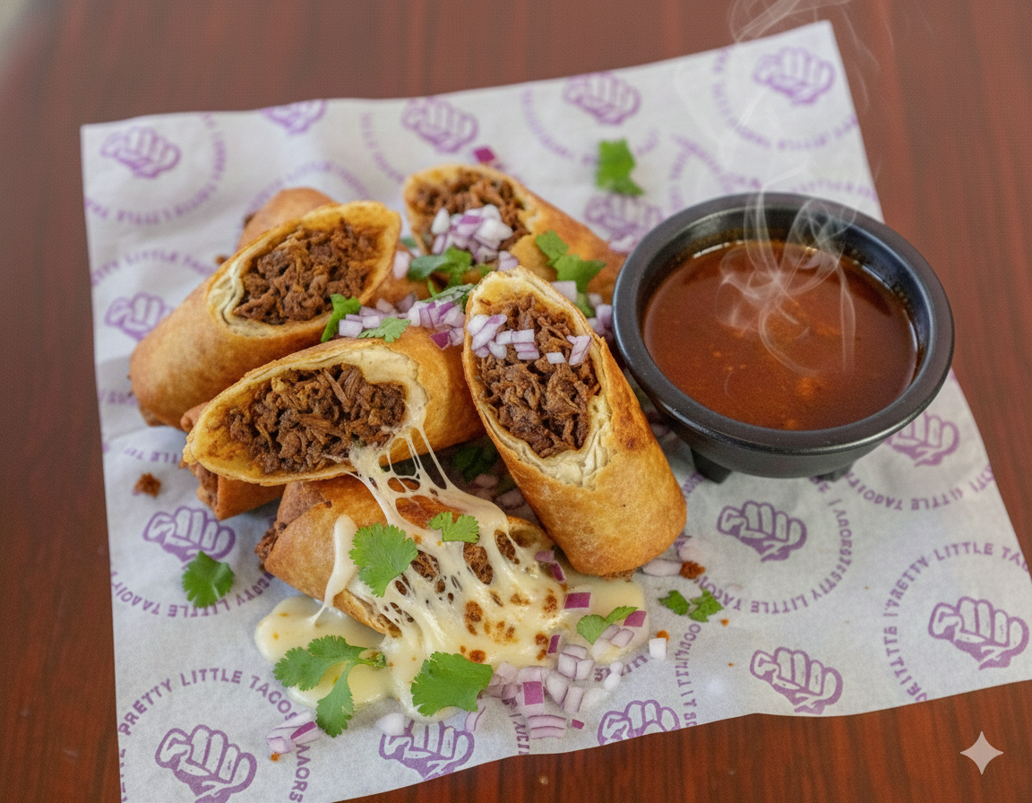 A Fusion Of Melted Cheese And Birria Pefection! Tender, Slow Cooked Meat Embraced By A Crispy Flour Tortilla. Served With A Side Of Consommé, Crema & Pico.