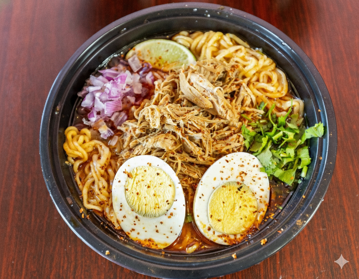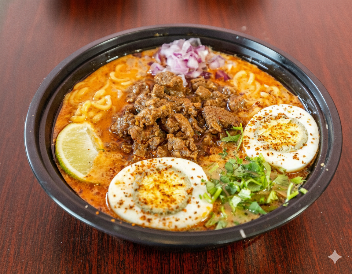 Our Birria Ramen comes either Mild, Medium, or Spicy Topped with Onions and Cilantro