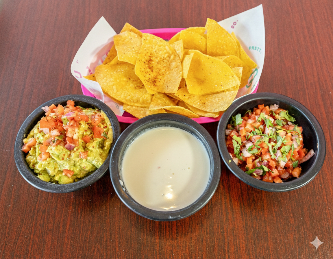 Choose Any 3 Items: Queso, Guacamole, Pico De Gallo Or Salsa. Served With Fresh Tortilla Chips. (No Double Choices)