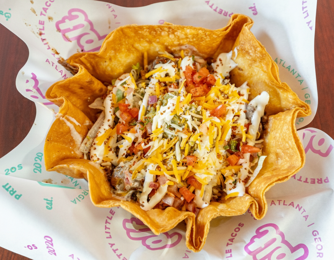 The ultimate fusion of elegance and crunch. A toasted six-point vault packed with your choice of protein, melted cheeses, fresh greens, and a crisp tostada layer. Finished with our signature house crema, it’s a heavy-hitting masterpiece that looks as good as it tastes.
