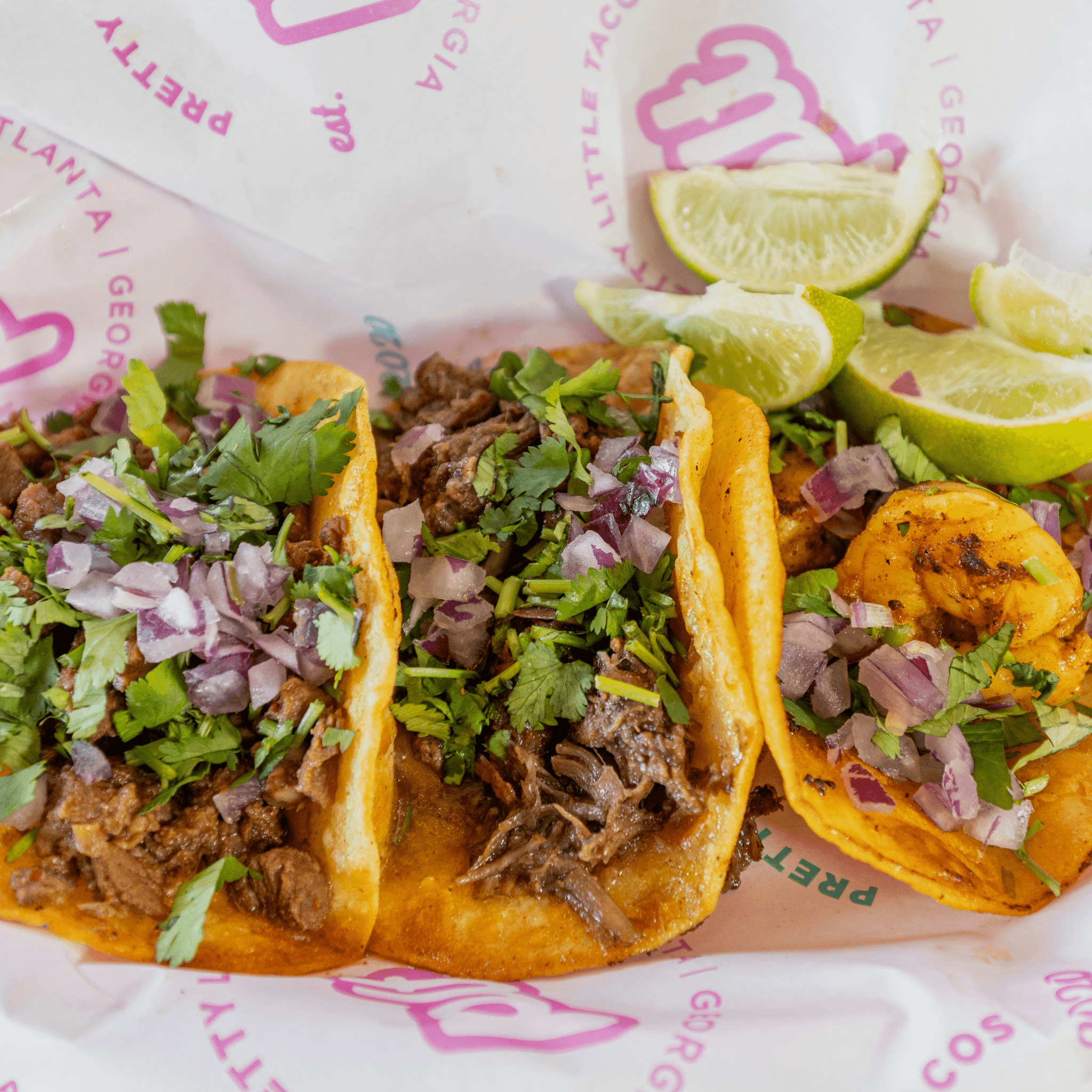 OG style tacos served on a corn tortilla with onions, cilantro, and lime