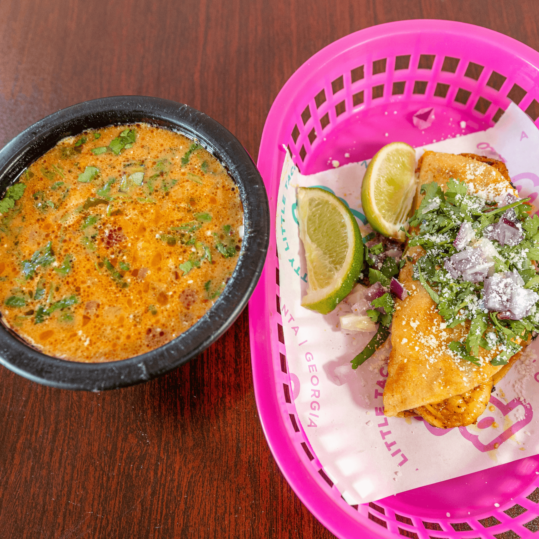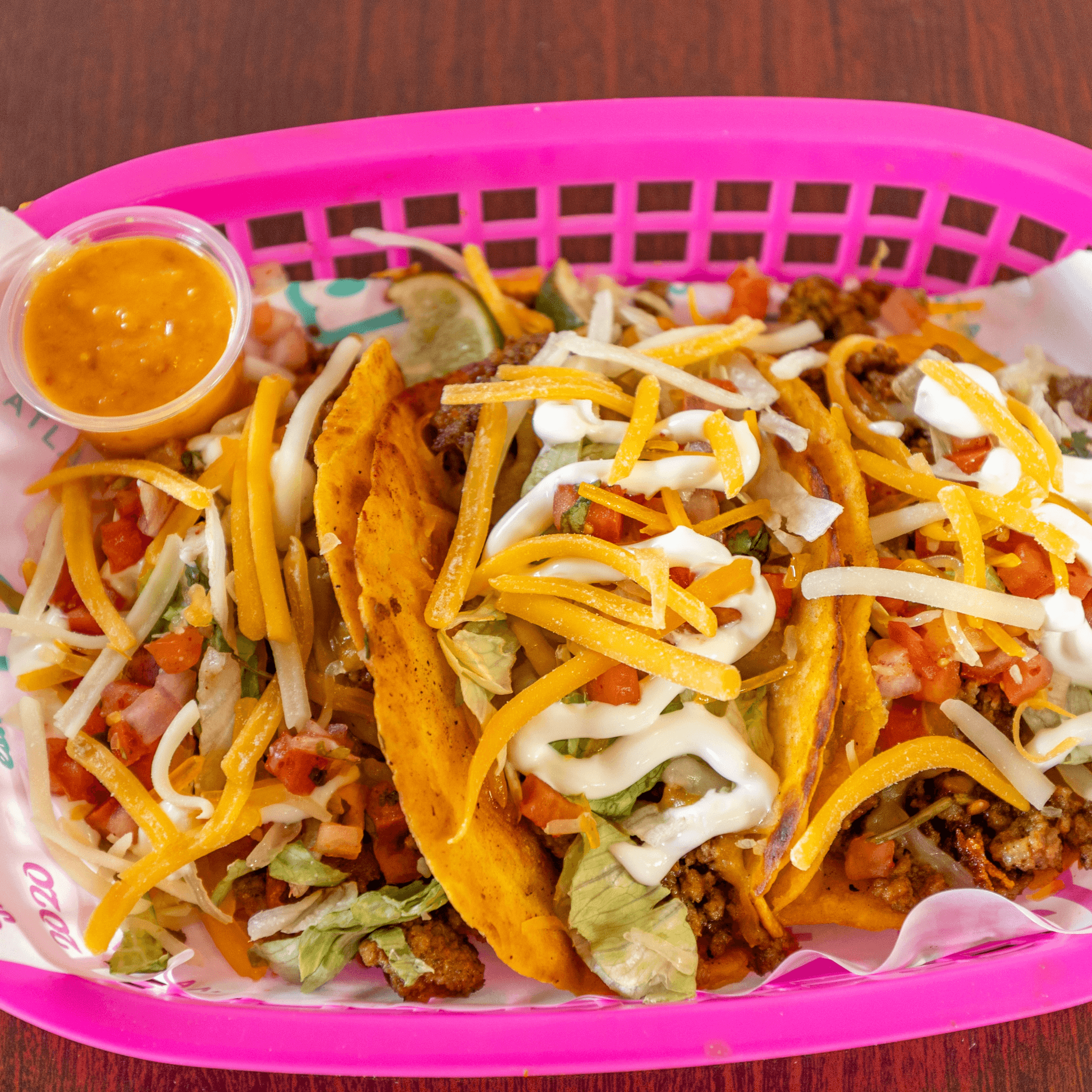 Served with shredded cheese, lettuce, pico de gallo, sour cream, cilantro, and lime