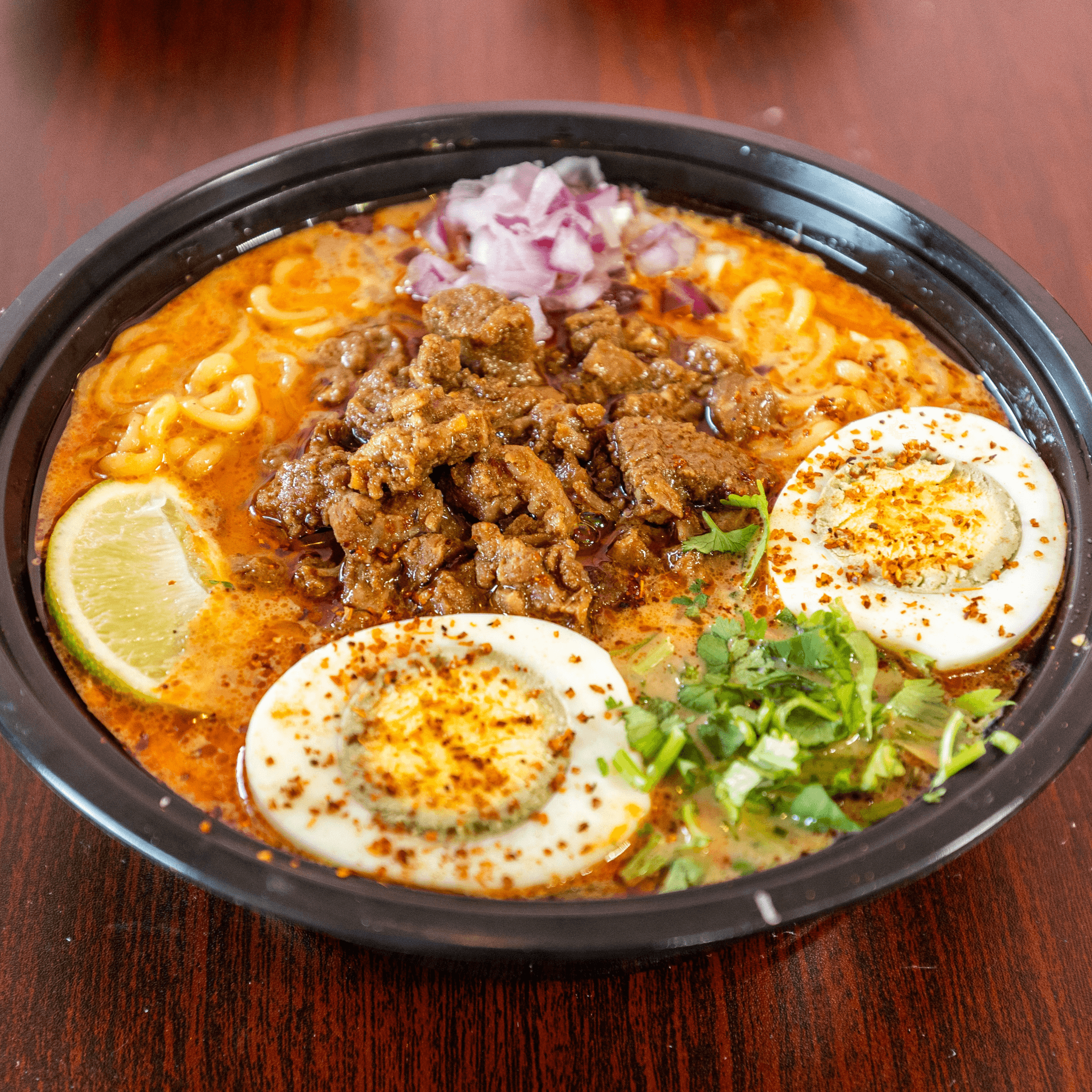Get tangled in our ramen served with our rich consommé, onions, cilantro, and lime