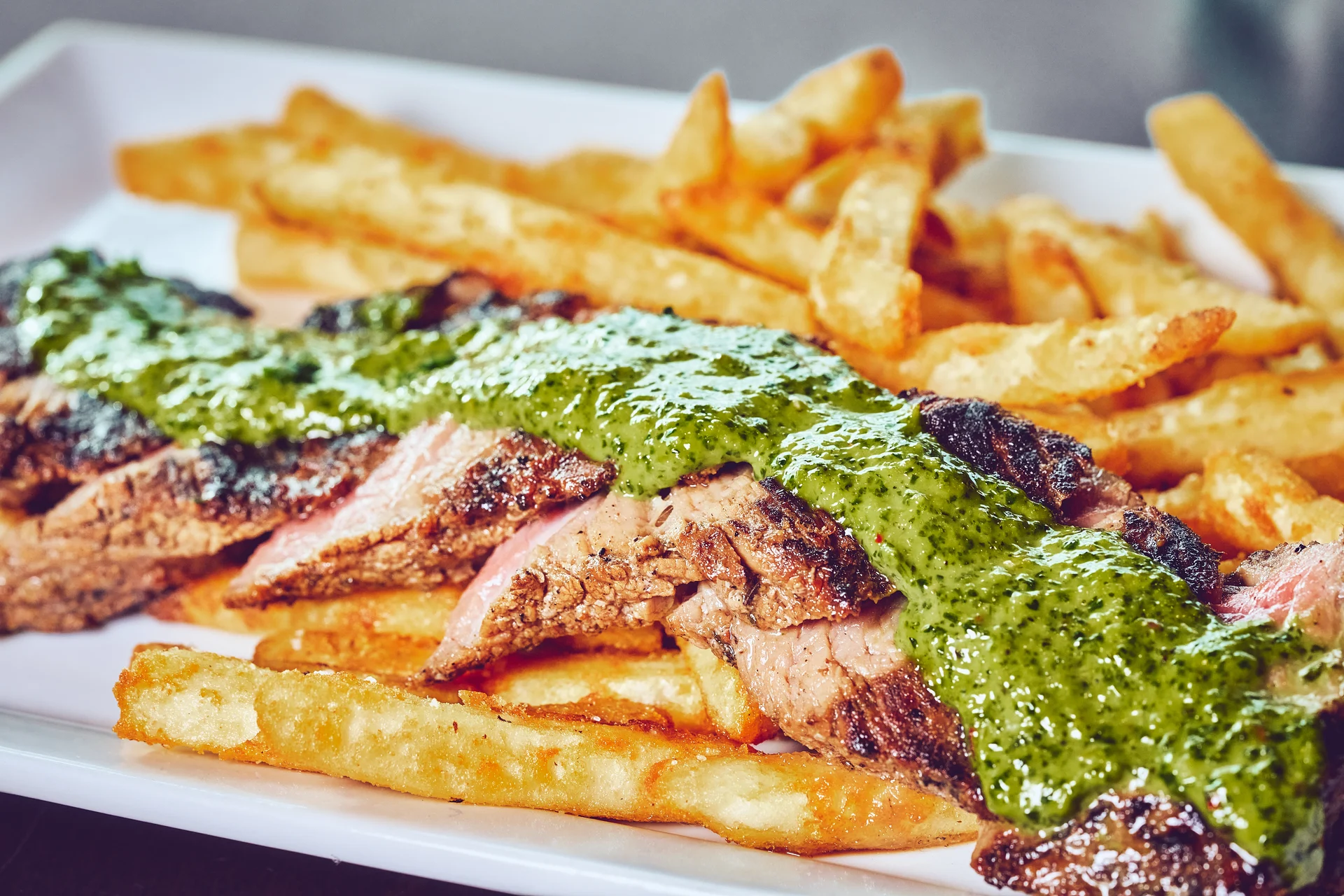 Pineapple Jerk Flank, Chimichurri, Pomme Frites