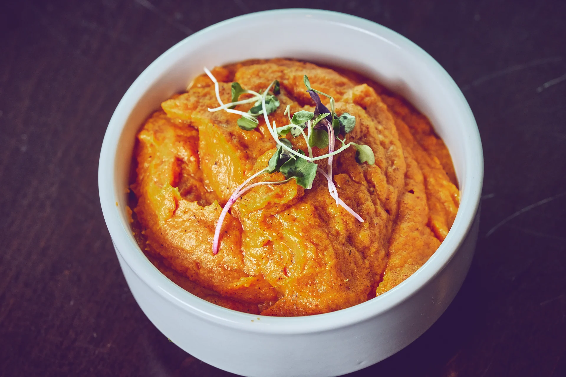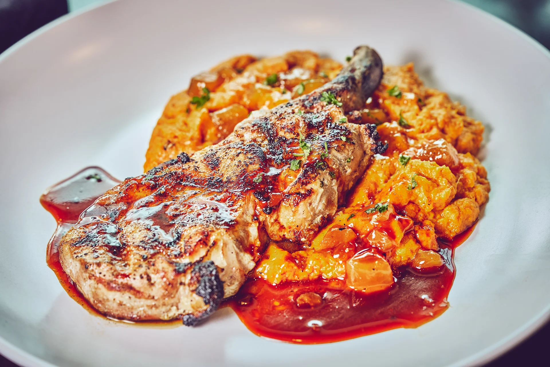 Sweet Potato Mash, Jerk Fried Apple, Fig Glaze