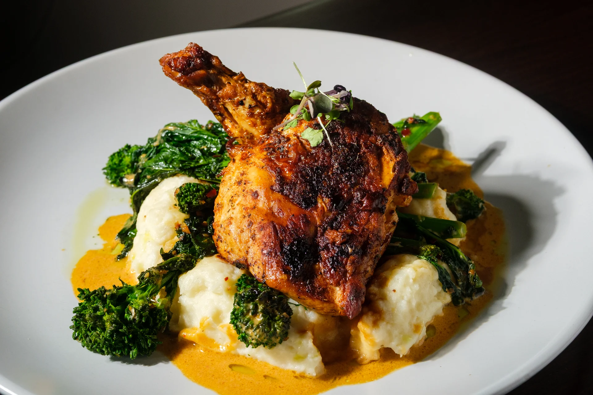 Scallion Mash, Grilled Broccolini Cajun Cream