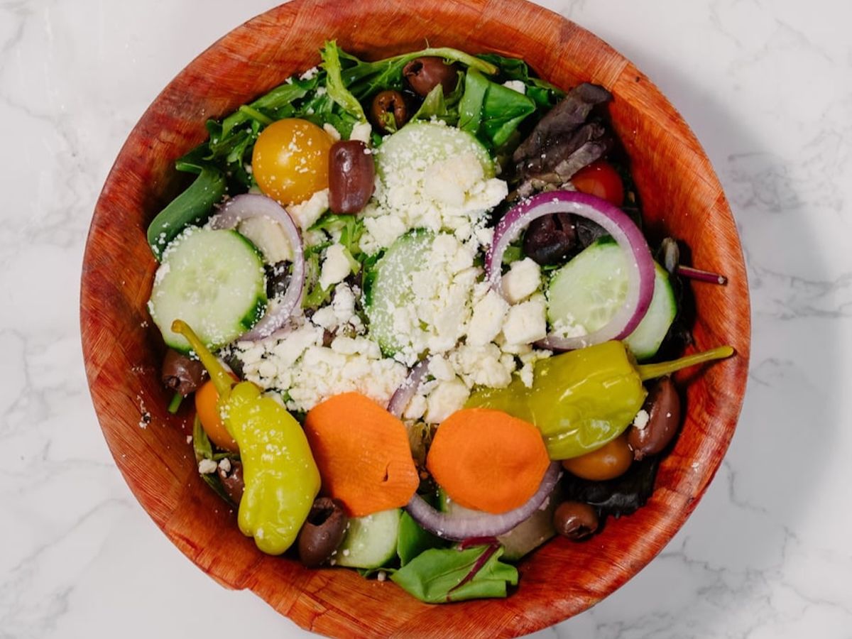 Mixed garden salad with feta, olives & greek seasonings