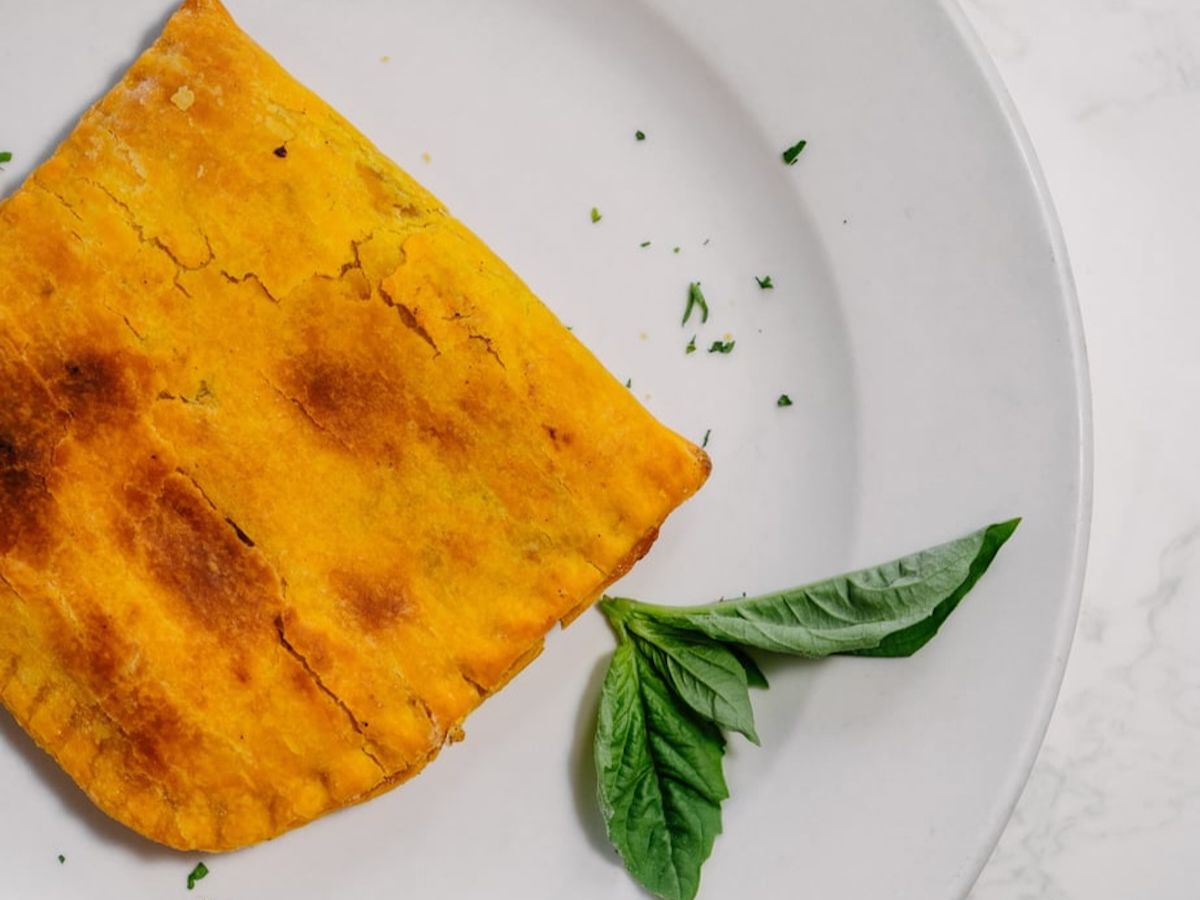 Golden pastry filled with seasoned ground beef, offering a taste of Jamaican cuisine.