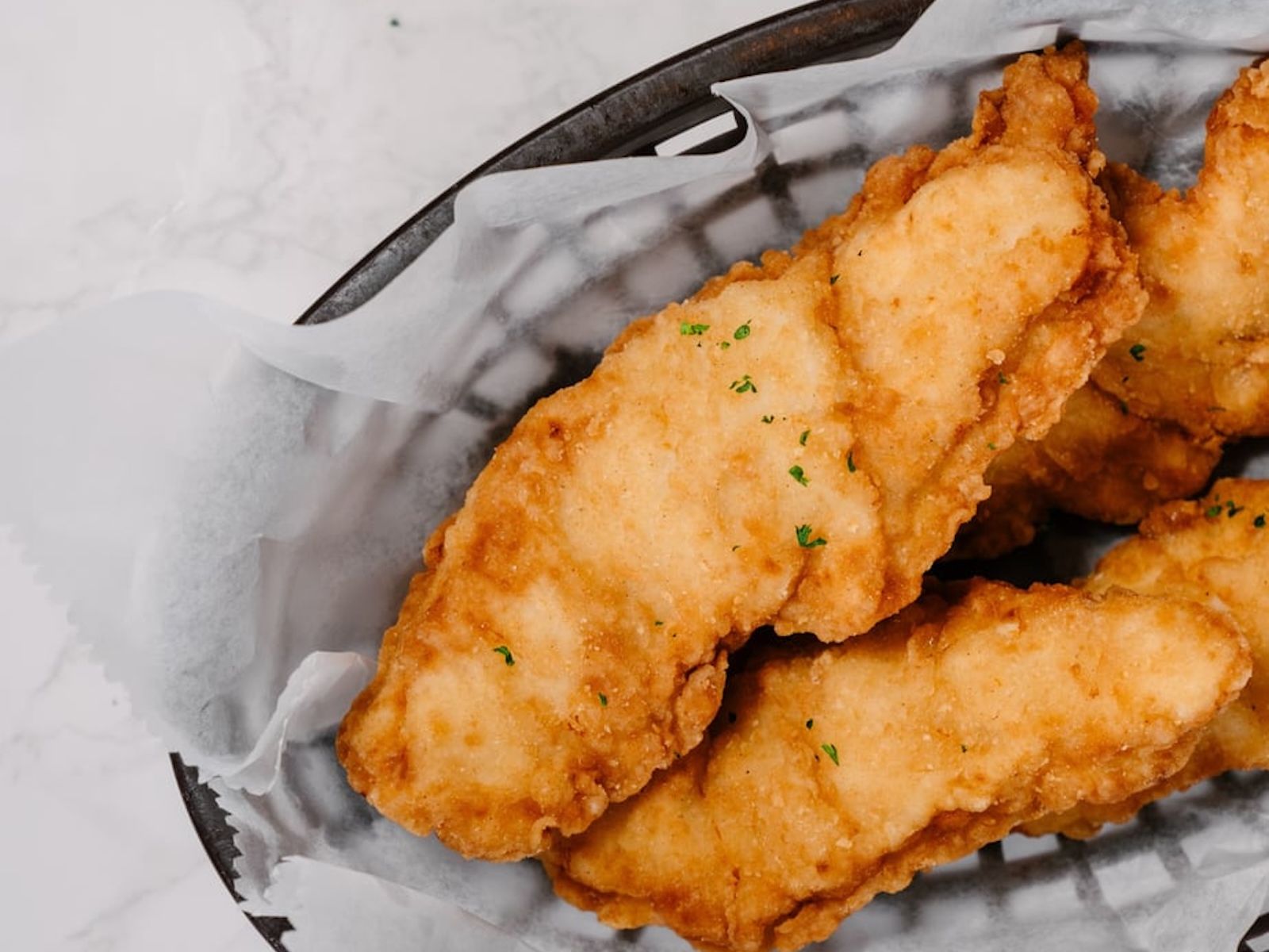 Crispy strips of breaded chicken, perfect for dipping and enjoying with your favorite sauce.