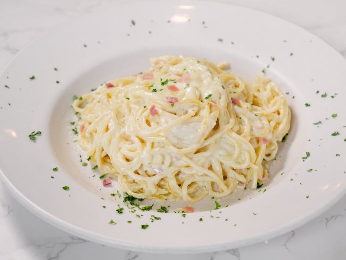 A classic Romano dish with imported Italian bacon and pecorino cheese in a light cream sauce