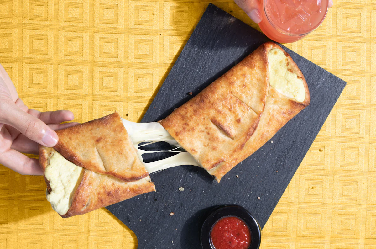 Introducing NEW! Fast Fire’d Folds! Essentially our original baked pizza dough enveloping a cheesy mix of savory ingredients accompanied by a dipping sauce. The Triple Cheese, one of three chef inspired flavors, features, Mozzarella, Ricotta, Parmesan, and Oregano served with two cups of house-made red sauce.