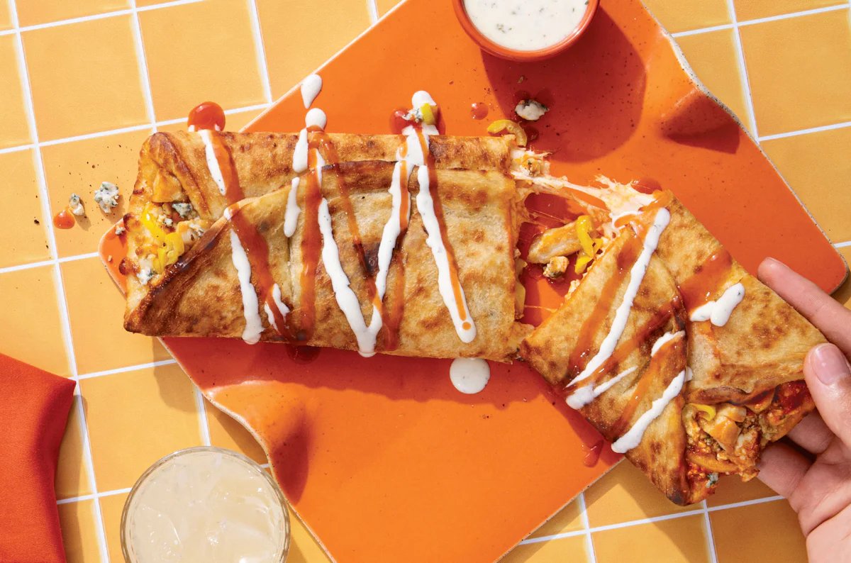 Introducing NEW! Fast Fire’d Folds! Our original baked pizza dough enveloping a cheesy mix of savory ingredients accompanied by a dipping sauce. The Buffalo Blue, one of three chef inspired flavors, includes, mozzarella, gorgonzola, chicken, banana peppers, and Frank’s Red Hot sauce served with two cups of Ranch.